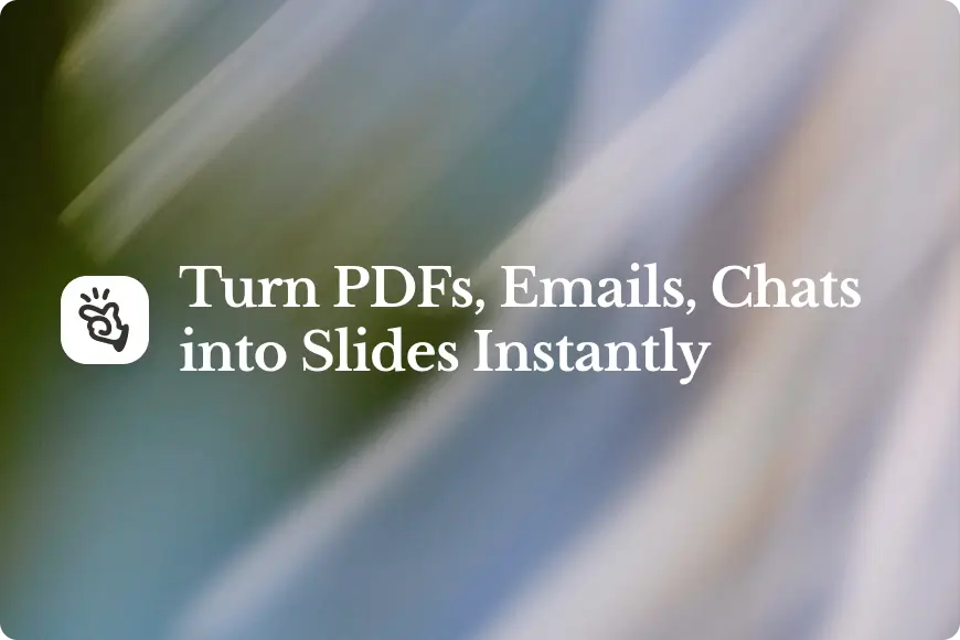 Most AI tools can’t. They promise a shortcut but deliver a blank prompt box, forcing you to do the heavy lifting of summarizing your work and feeding it to the AI. This guide introduces a new way to make PowerPoint slides with an AI that goes beyond the prompt box to understand your work, wherever it lives.