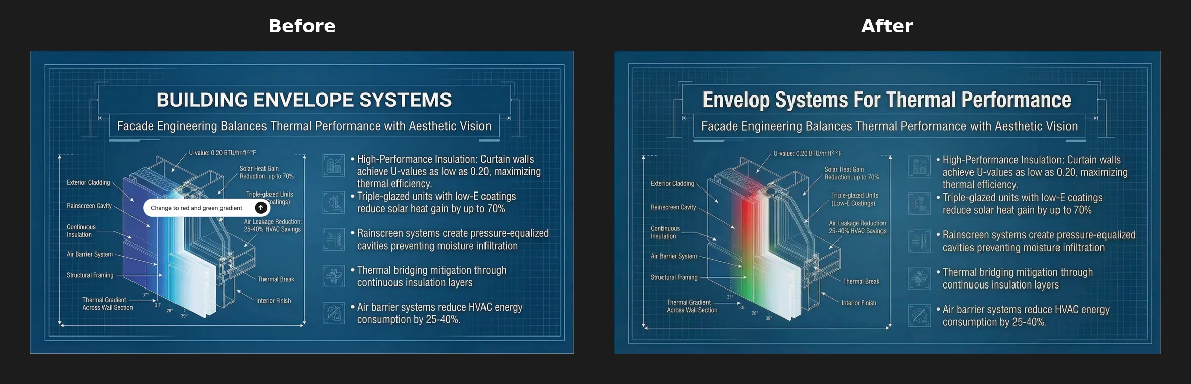 •See before and after results — refine specific elements without regenerating the entire slide.