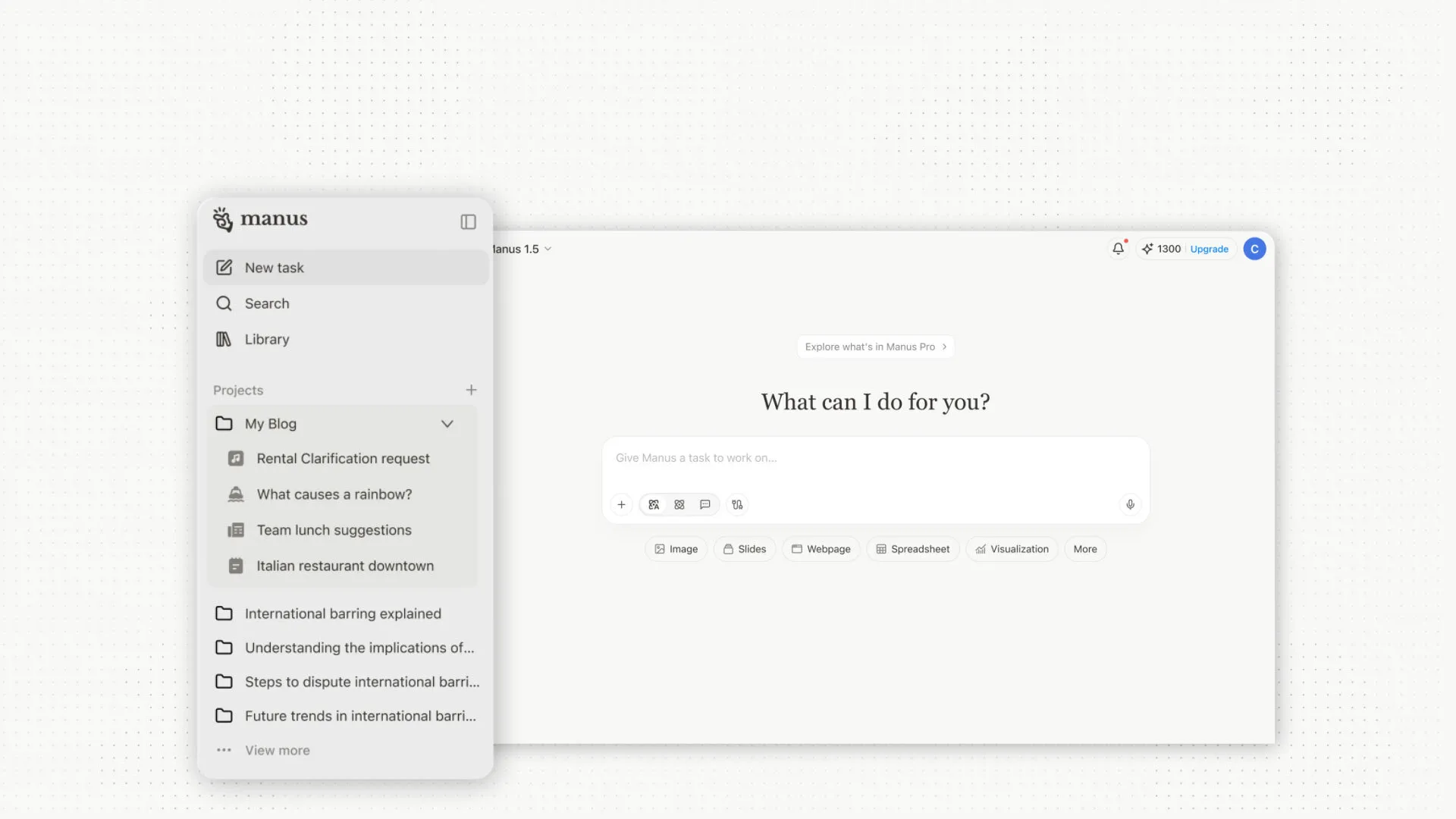 Projects bring clarity to your Manus workspace. Instead of scrolling through an endless list of sessions trying to remember which one contained that important analysis, your work is now organized by context.