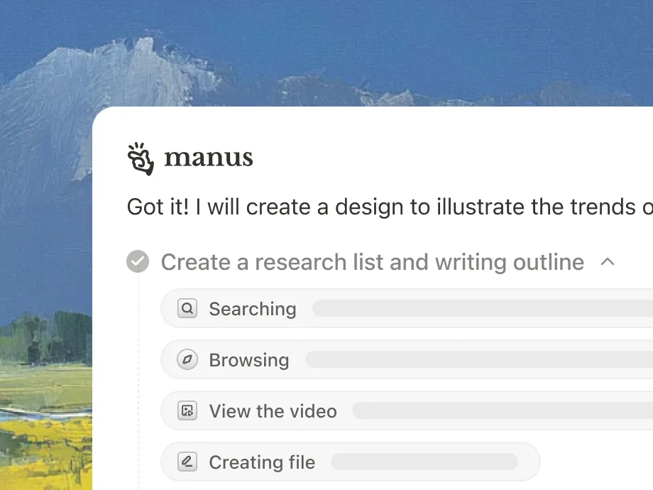 Manus는 단순한 도구가 아닌 파트너입니다. 디자인하기 전에 웹사이트를 탐색하고, 비디오를 시청하며, 문서를 분석하여 통찰력을 얻고, 사용자의 목표를 이해하며 지루한 작업을 자동화합니다.