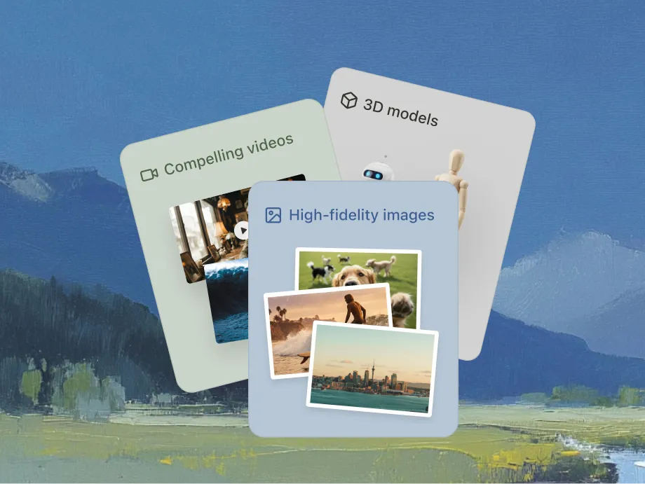 이미지에만 만족하지 마세요. Nano Banana Pro 및 ChatGPT Image와 같은 최고의 모델에 액세스하여 텍스트로 고화질 이미지, 매력적인 비디오, 심지어 3D 모델까지 생성하세요.