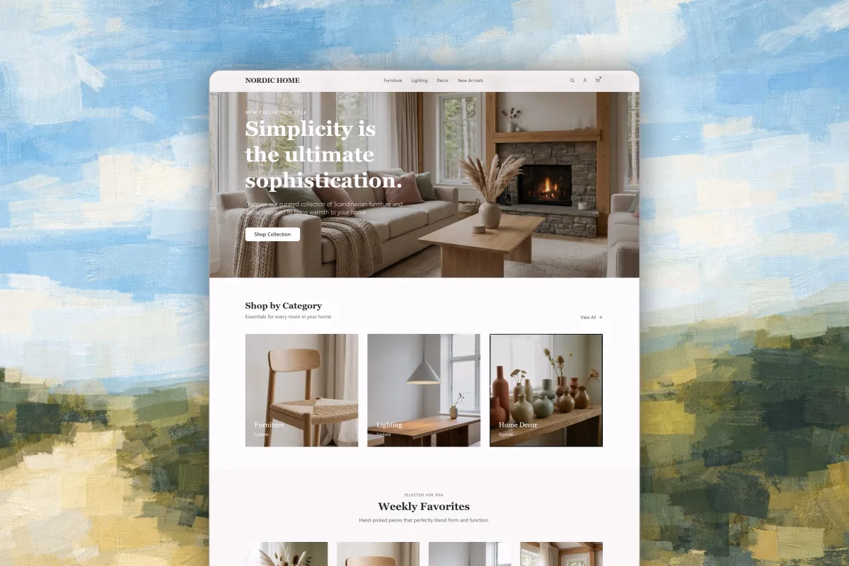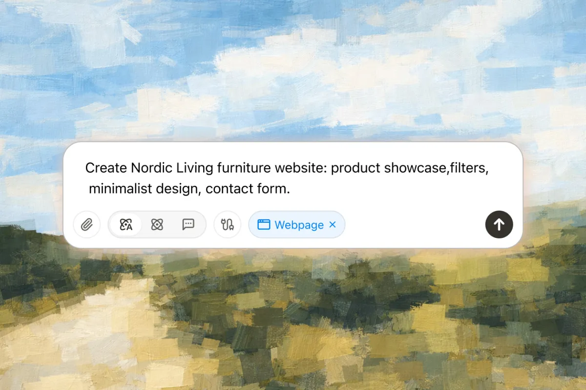 Don't drag and drop. Just tell Manus: "Create a nordic living furniture website." It writes the code and builds the layout instantly.