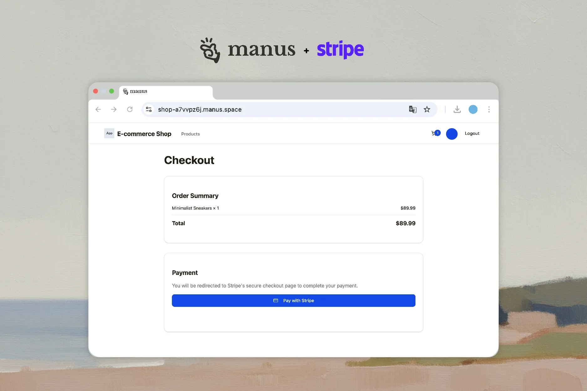 Stop dragging and dropping. Just describe your business, and Manus generates a production-ready ecommerce platform with design, database, and payments fully configured.