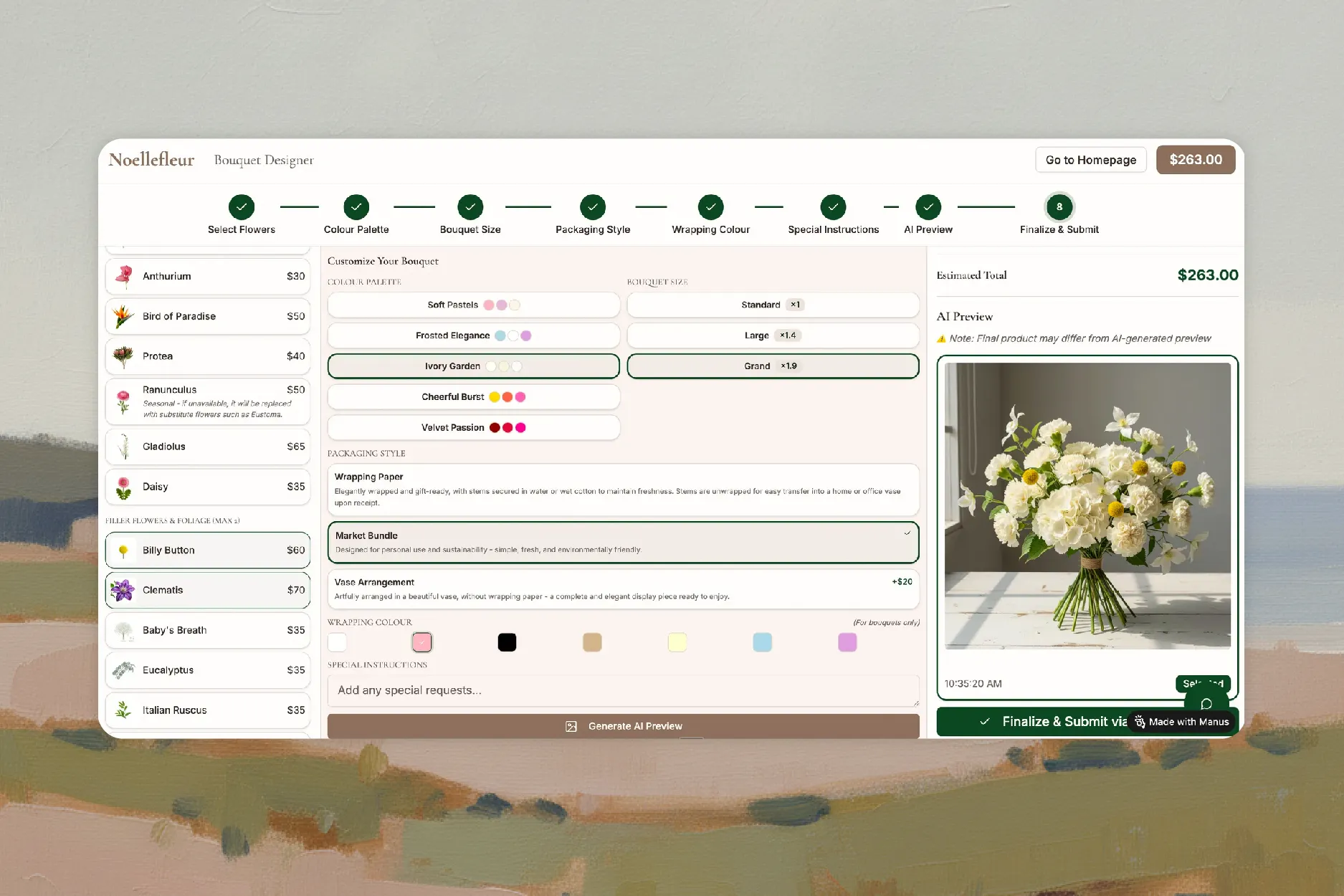 You have total freedom. Manus is a versatile platform designed to help you sell physical products, offer digital downloads like ebooks, or even manage a subscription-based service. Whether you are looking to start a dropshipping business or sell handmade goods, our AI generates a flexible infrastructure that supports almost any business model you have in mind.